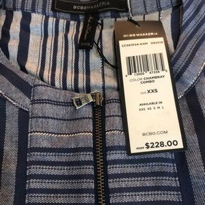 BCBGMaxAzira Blue Chambray Tonal Canyon Stripe Zip Front Shift Dress