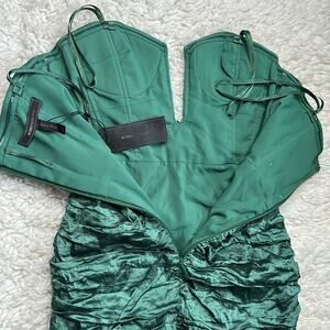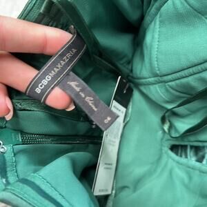 BCBGMaxAzira Tristina Deep Evergreen Scrunch Style Mini Dress Flower Sexy BK6