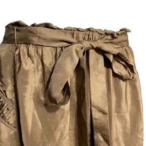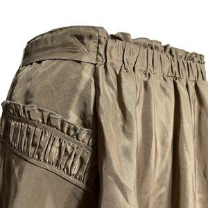 BCBGMaxAzria 100% Silk Skirt NEW M Ruffle Pleated Knee Length Taupe Satin A-Line Skater Elastic Waist Tie Waist Belt