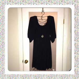 BCBG MaxAzria soft knit dress with 2 front pockets, belt it or loose with boots. This dress is very comfortable and versatile. Above knee length. Hem has 3" slits on both sides. Fabric is 55% silk/45%cotton, no tears or holes.