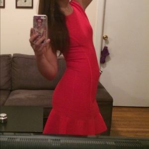 Thick spandex dress (helps with shape) with flare at the bottom. This dress is a stunner!