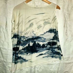 Sexy BCBGMaxazria, drop shoulder top. Can be tied up on the left 20" open seam. Pairs well with denim shorts or pants. No stains, rips or tears.