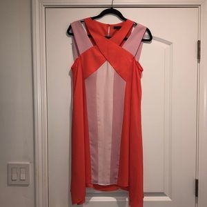 BCBGMaxAzria dress. Beautiful spring colors and flowy style. See photos for marks/damages. Preworn. Chantal colorblock swing dress