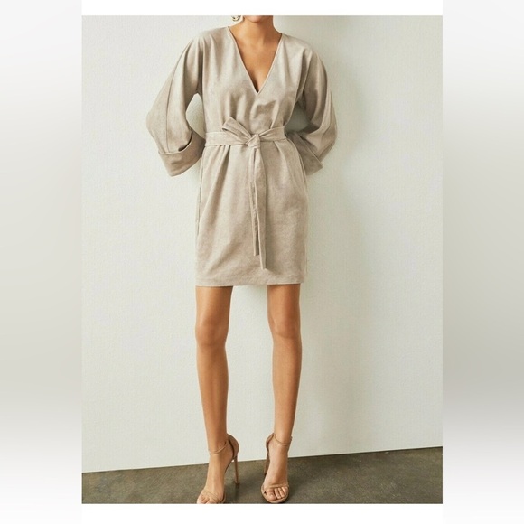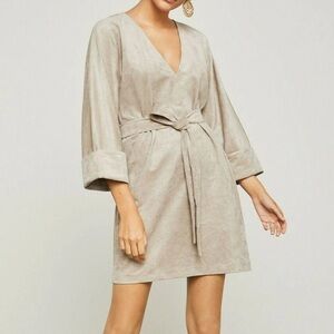 BCBGMAXAZRIA NWOT FAUX-SUEDE 3/4 SLEEVE V-NECK BELTED MINI DRESS size XXS