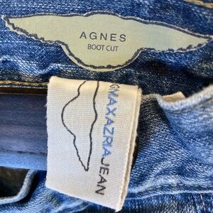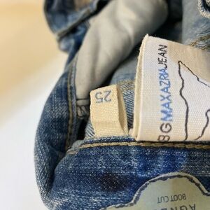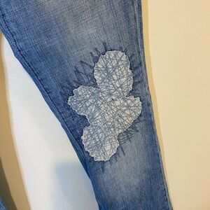 BCBGMaxazria Agnes Boho Flare Bootcut Patchwork Distressed light wash Blue Jeans women’s size 25
