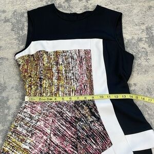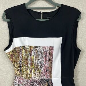 BCBGMaxAzria Alessandra Peplum Abstract Mini Dress Black Multi Sleeveless Sz 8