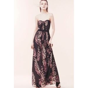 BCBGMaxAzria Amber Strapless Floral Print Sheer Contrast Gown