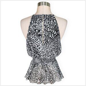 BCBGMaxAzria BCBG Black White Combo Pleated Peplum Smocked Waist Top NWT NEW S