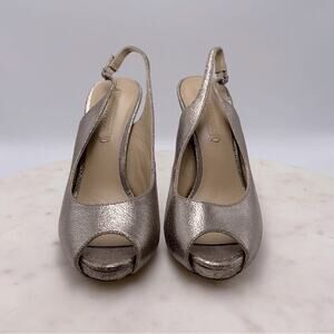 BCBGMaxAzria BCBG LibbyMet Pewter Metallic Peep Toe Heels Pumps Shoes Size 7.5