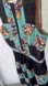 Elegant mini dress with floral design. Features bold black mesh stripes and vibrant teal accents. Fully lined. Zippered back.