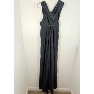 BCBGMaxAzria Black 100% Silk Adjustable Waist Wrap Wide Leg Jumpsuit Women 4