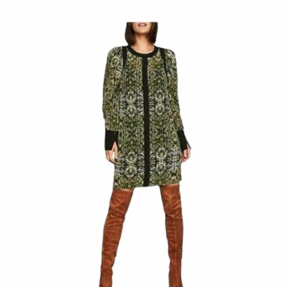 BCBGMaxAzria Black Chiffon Printed Dress Size XSMALL