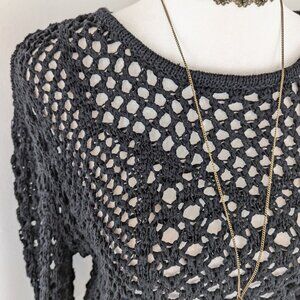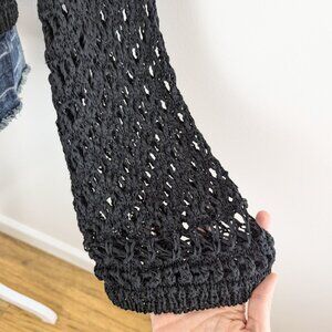 BCBGMaxAzria Black Chunky Open-Knit Long Bell Sleeve Cropped Oversized Slouchy Sweater Size Small