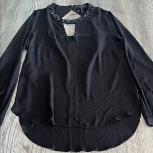 BCBGMaxAzria Black Embellished Cut Out Blouse