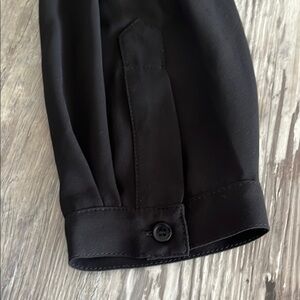 This chic black blouse from BCBGMaxAzria features a bib collar and stylish cut-out embellishments, offering a sophisticated touch to any outfit. The long sleeves and elegant design make it a versatile choice for both casual and formal occasions.