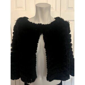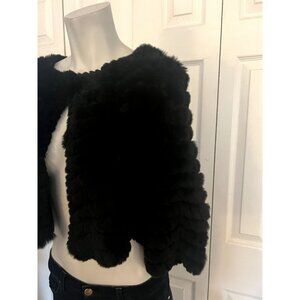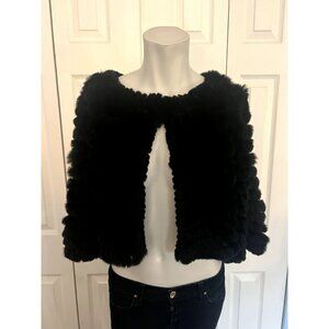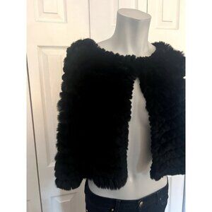 Elegant black faux fur sweater. Open front design. Perfect for layering. Super soft