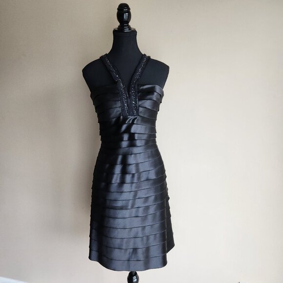 BCBGMaxAzria Black Halter Beaded Bandage Cocktail Dress Size 6