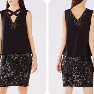 BCBGMaxAzria Black Joline Studded Crisscross Sleeveless Blouse, Size Small