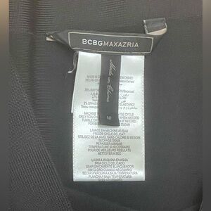 This knee-length A-line skirt by BCBGMaxAzria is crafted in a solid black hue, perfect for work or casual settings. Its structured design features a fitted waistband that gracefully flares out, offering a flattering silhouette. The skirt's fabric provides a substantial drape, ensuring it maintains its elegant shape throughout the day.