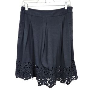 BCBGMaxAzria Black Pleated Floral Crochet Lace Hem Pockets Skirt Women's Size 6