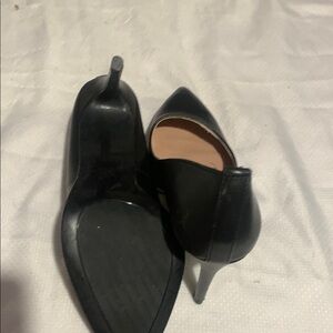 Size 8 1/2 excellent condition 4 inch chill Elevate your style with these sleek black heels from BCBGMaxAzria, featuring a classic pointed-toe design and a sophisticated stiletto heel. Crafted from smooth leather-like material, these heels offer a glossy finish and a timeless silhouette, perfect for both professional and formal occasions.
