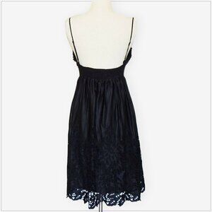 BCBGMaxAzria Black Silk Empire Cutwork Lace Embroidered Slip Boho Dress NWOT XS