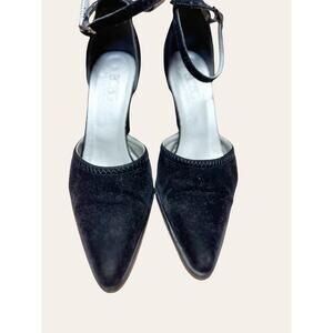 BCBGMaxAzria Black Suede Silver Pointed-Toe Heels Size 8