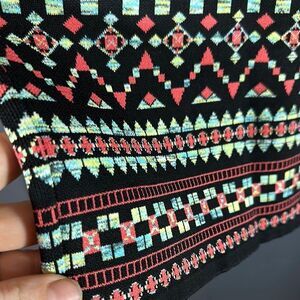 This knee-length pencil skirt by BCBGMaxAzria features a striking black and pink color scheme with embellished details. The form-fitting design showcases a bold geometric pattern, making it an ideal choice for cocktail events and night outings.