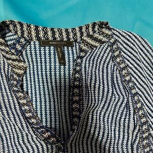 BCBGMaxAzria Black and White Peplum Blouse with Mandarin Collar