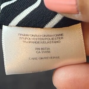 BCBGmaxAzria black and white striped sleeveless dress has a racerback and lis perfect for your casual outings in the spring and summer. Rayon polyester and spandex blend, attached bra and bubble skirt