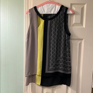 BCBGMaxAzria Black and Yellow Graphic Boxy Tank Top