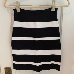 Stretchy and form-fitting black and white striped miniskirt pairs great with black, white, or a bright pop of color on top! Worn twice, no signs of wear.