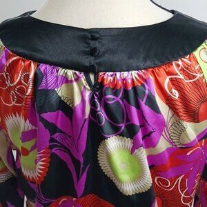 BCBGMaxAzria Blouse Multicolor Abstract Geometric 3/4 Sleeve Satin Size XS
