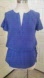 Chic royal cobalt electric periwinkle blue blouse with black stripes. Split vneck. Short sleeves with a beautiful draped detail. Drawstring peplum waist. 100% silk. Ideal for any occasion. Excellent condition.