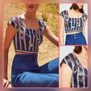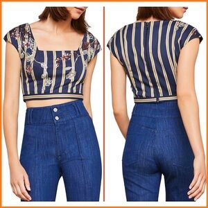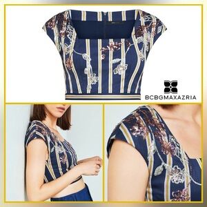 BCBGMaxAzria Blue Floral Sequin Embellished Cropped Top