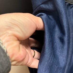 This stunning blue sheath dress by BCBGMaxAzria features a chic cowl neckline and elegant ruched detailing, perfect for a cocktail or night out. The dolman short sleeves add a modern touch to its classic midi length, making it a versatile addition to your wardrobe.