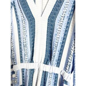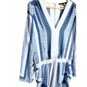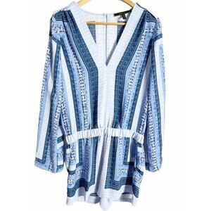 BCBGMaxAzria Blue Striped Print Long Sleeve V-Neck Romper Size XS
