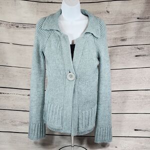 ☔️🔸️BCBGMaxAzria Blue Variegated Alpaca Single Button Cardigan Sweater Large