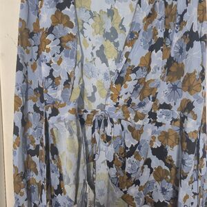 BCBGMaxAzria Blue and Brown Blouse with Tie Front and Sailor Collar Size Large