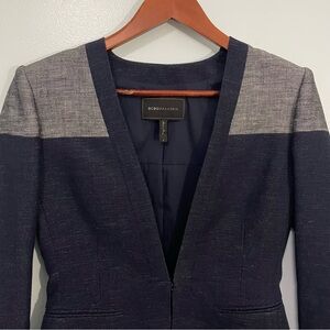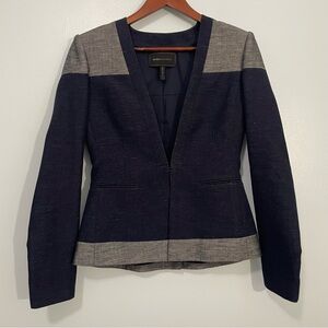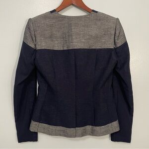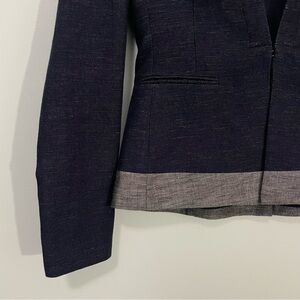BCBGMaxAzria Blue and Gray Color-Block Linen Cotton Blazer S