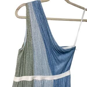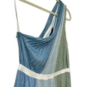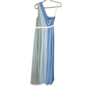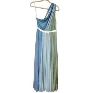 BCBGMaxAzria Blue and Green One-Shoulder Maxi Dress