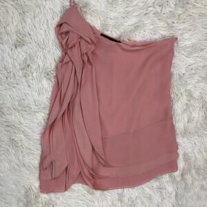 BCBGMaxAzria Blush Pink One Shoulder 100% Silk Ruffle Blouse Top XXS