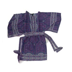 Give your wardrobe a stylish bohemian upgrade with this gorgeous BCBGMaxAzria Tunic Dress. Designed with wide kimono sleeves, a self-tie waist belt, and an intricate paisley pattern in navy blue, pink, and white. This lightweight dress offers a relaxed yet flattering fit — perfect for brunch dates, vacations, or effortless everyday chic.