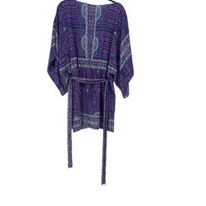 BCBGMaxAzria Bohemian Tunic Dress Kimono Sleeves Navy Blue, Pink & White Size S