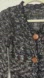 Very interesting boucle knit cardigan is a marled combination of earth tones of brown, black, and white. In addition to the unique knit, the cardigan has ruffled neckline, hem, and cuffs. Four very large lacquered brown wooden buttons down the front of the cardigan. At bottom front, there are four squiqqly accent seams. Sweater is fitted through body and sleeves.