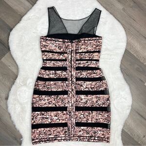 BCBGMaxAzria Brenda Bandage Dress Patterned Black Pink 4 Sleeveless Sheer Top