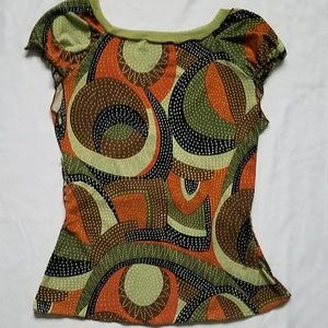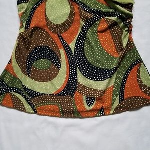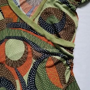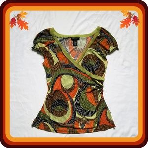 BCBGMaxAzria Brown Green Orange Wrap V-Neck Shirt