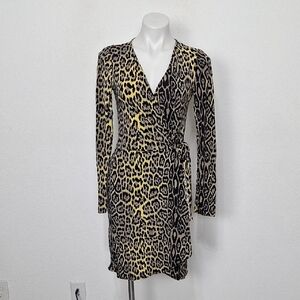 BCBGMaxAzria Brown Tan Adele Leopard Print Mobwife Authentic Wrap Dress Size S
