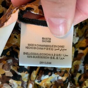 The brown, yellow and gold colors of this BCBGMaxAzria blouse are warm and golden. The close up photo shows the color and texture of the fabric. Has a beautiful flow to it. It’s truly a seasonless top. In excellent, like new condition. 21” pit to pit, 26” length, 11” sleeve.