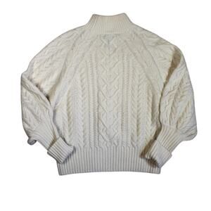 BCBGMaxAzria Cable Knit Sweater Womens Medium Merino Wool Cream Chunky Mock Neck